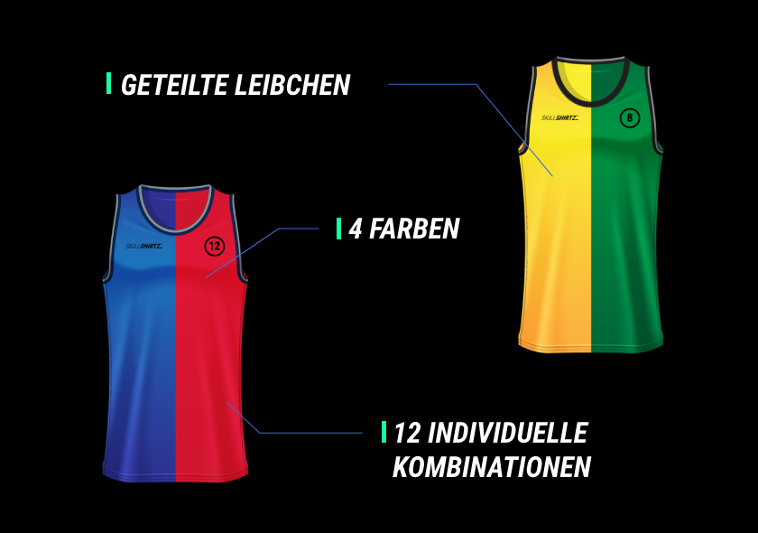 Die SKILLSHIRTZ sind verschiedenfarbige Trainingsleibchen und als Marke und Design geschützt. Es handelt sich um farblich geteilte Trainingsleibchen, die in Bezug zur linken und rechten Körperhälfte jeweils eine andere Farbigkeit besitzen. Über diese Aufteilung können in Verbindung mit diesen Farben direkte oder indirekte Farbsignale entwickelt und als Bewegungs- oder Handlungsaufforderung für einen kognitiven Trainingsprozess genutzt werden.